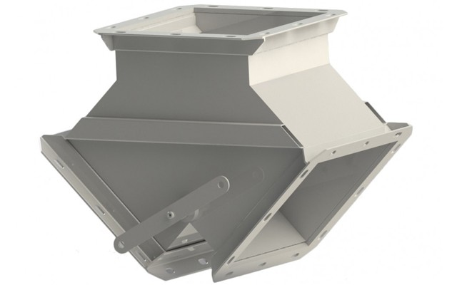 Клапаны перекидные КП предназначены для обеспечения бесперебойной подачи воздуха в вентиляционной системе. Конструкция клапана позволяет «перекидывать» воздушный поток от основного вентилятора, в случае его остановки, на резервный вентилятор. Клапаны устанавливаются в вентиляционных системах взрывоопасных производств с давлением до 1500 Па и скоростью перемещаемой воздушной среды 6—20 м/с.